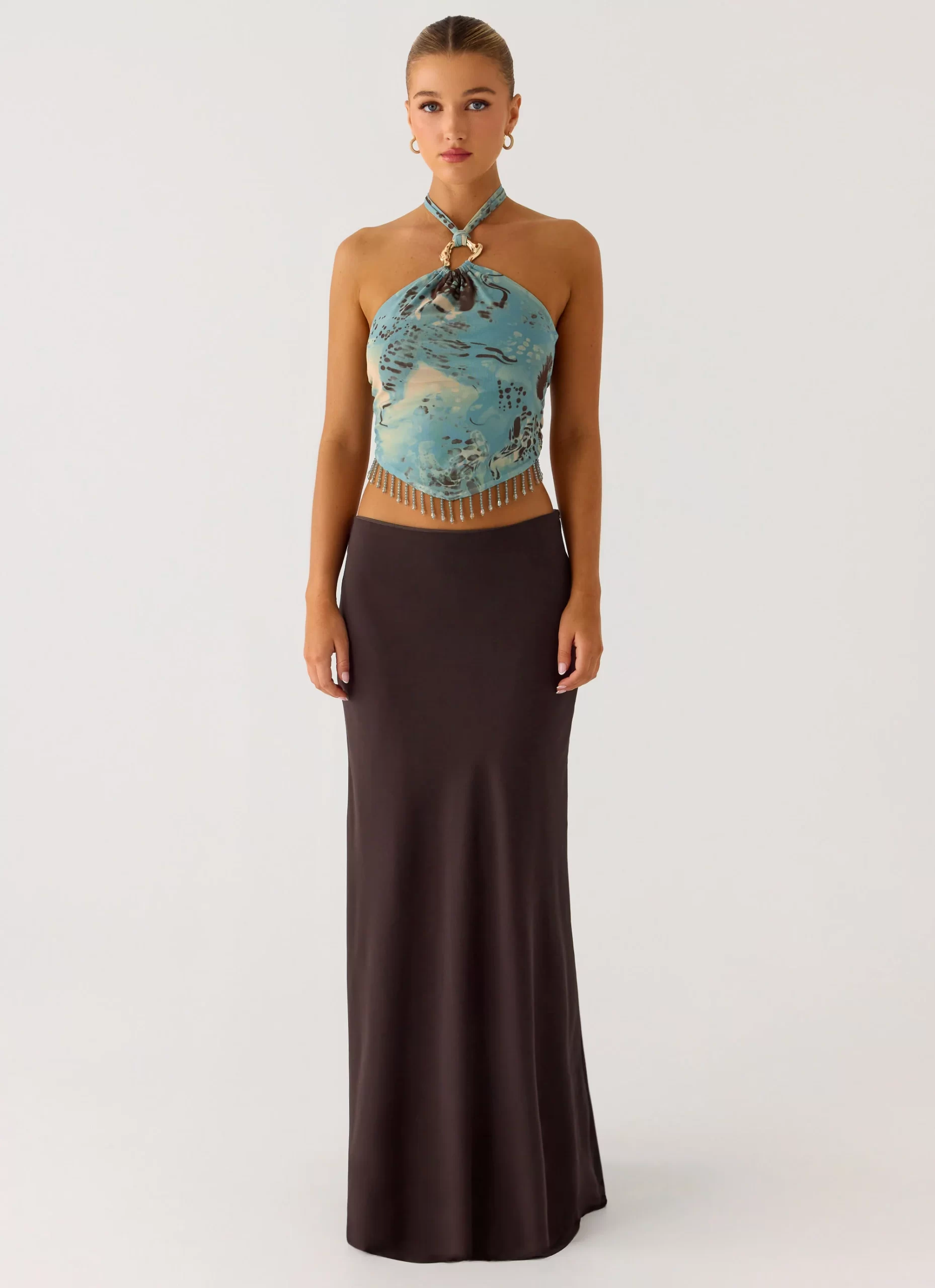 The Star Girl Maxi Skirt features a low-rise waistband, creating a flattering fit that sits comfortably on the hips. With its elegant garment construction and fully lined design, this skirt offers both style and coverage, making it perfect for day-to-night looks.