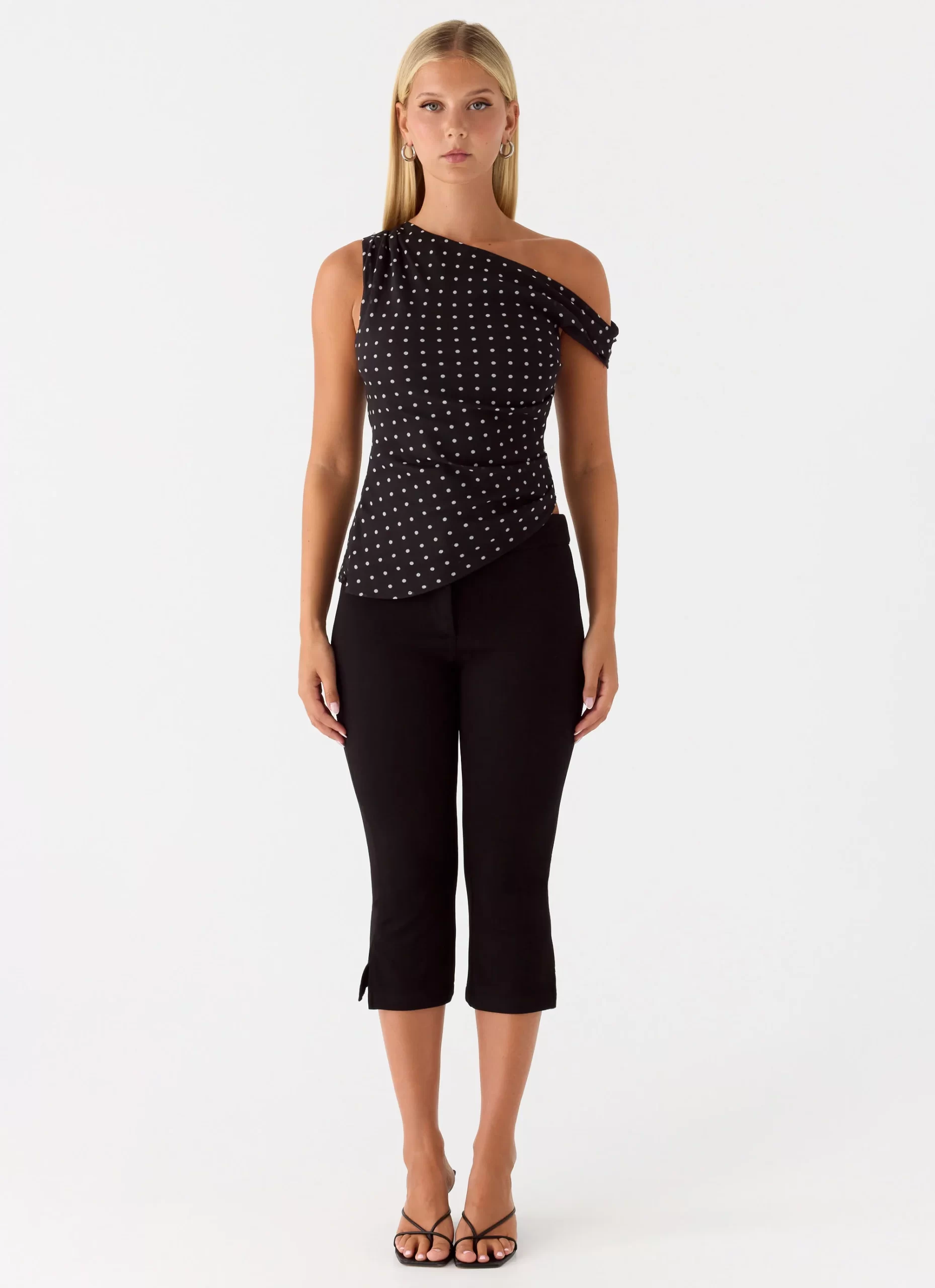 The Stereotype One Shoulder Top is made for golden hour styling with a chic, editorial finish. Featuring an asymmetrical off-shoulder neckline with pleated shoulder detail, this fully lined top is crafted in chiffon with side ruching and an invisible zipper for a flattering, body-skimming fit. Perfect for sunset-to-sundown occasions.